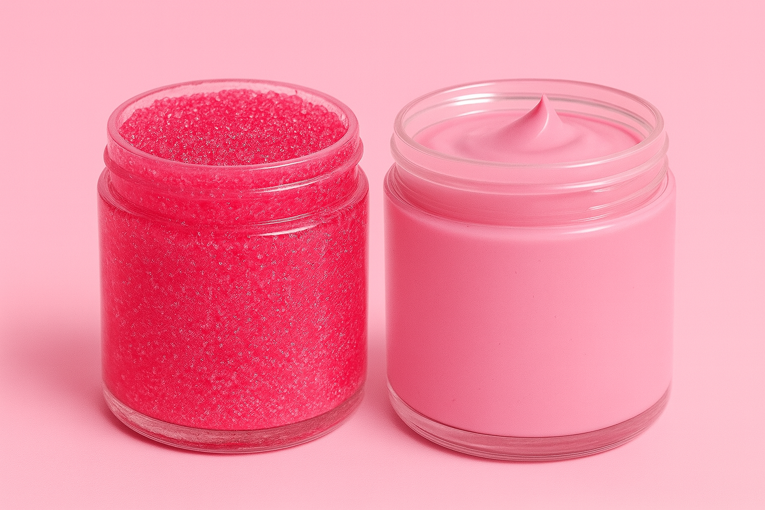 Baume lèvre rose à utiliser le soir , le gommage s’utilise avant de mettre la crème (10-20 minutes) ensuite on applique la crème pour dormir